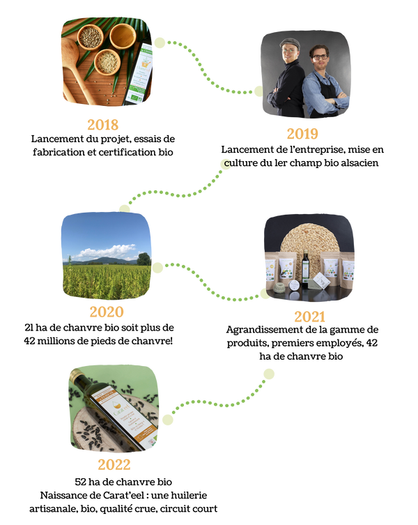 L'année 2019, annonce la renaissance de la culture du chanvre dans le Ried ainsi que le premier champ de chanvre Alsacien certifié biologique.