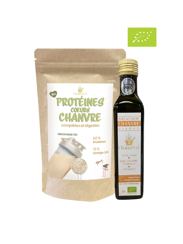 NOUVELLE OFFRE : PACK Protéines + des Huile Coeurs Chanvre 250ml riche en oméga-3 et vitamines E à moindre prix !